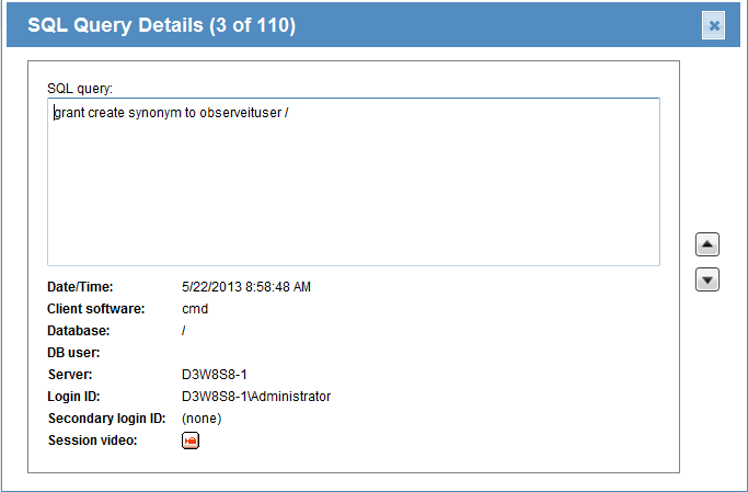 From this window, you can also view a video of the selected SQL query session by clicking the Session Video