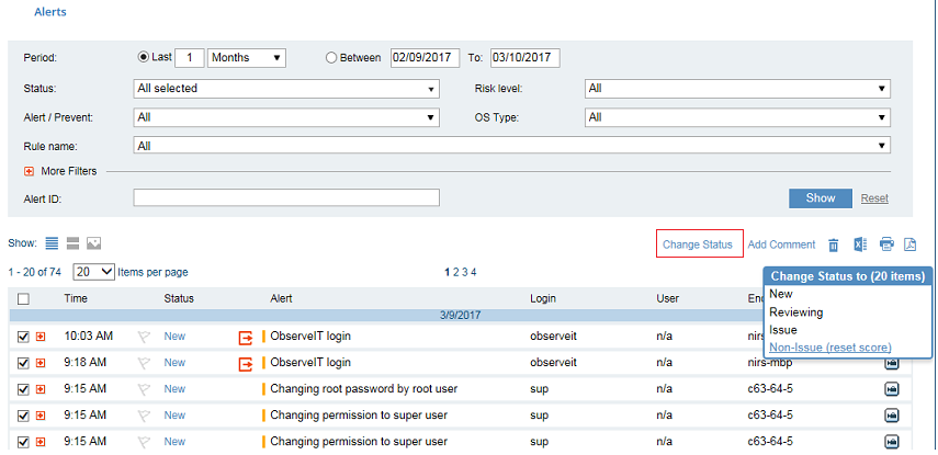 Non-Issue: Alerts that have been reviewed by the administrator and are considered low risk. These alerts will not contribute to the user risk score during user risk analysis.