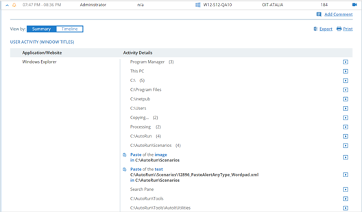 This view shows the any paste activity during a session. The example below shows two paste operations.