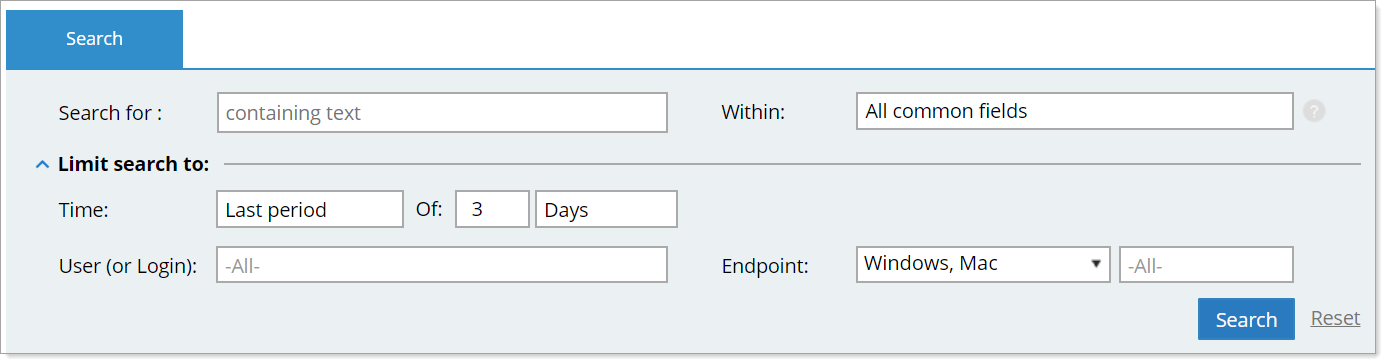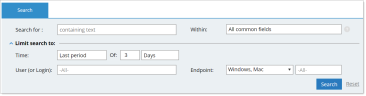 You can filter your search according to time period, name of the the user who logged in to the session(s), and endpoint(s) on which the sessions were recorded. By default, the search mechanism will run on data accumulated within the last 3 days.