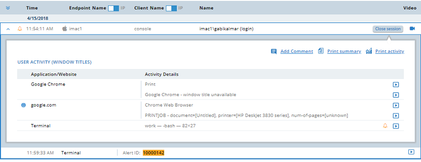 . In this page, you can view additional information about the session and the context of the activity that caused the alert with that ID.